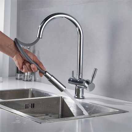 - 4-Way Kitchen Faucet – Include Soda & Hot & Cold and RO water (under sink filtration system ) faucet function to save your space and money. The faucet has 1/4″ push fit quick fitting for the RO reverse osmosis system.