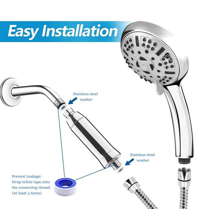 EFFECTIVE FILTRATION: shower filters to remove chlorine and fluoride, heavy metals, and other sediments. This shower head water softener makes bathing KIDS and PETS pleasant and SAFE. Our Vitamin C shower filter keeps eczema, dry skin, and dandruff at bay!