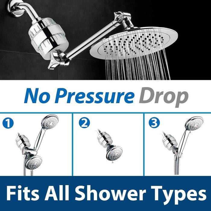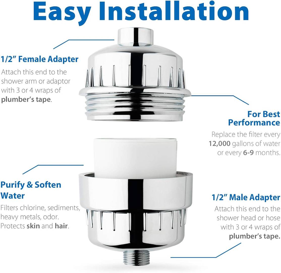 FULL COMPATIBILITY: Our EASY-to-install universal shower filters can be placed on wall-mounted, handheld, rainfall, and combo shower heads for versatile home use. They help to remove rust and iron